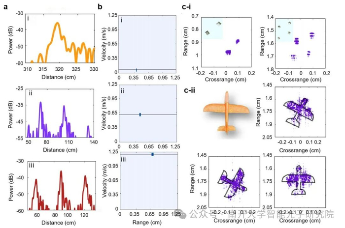 研究团队开展了一系列测试实验,全面探究此集成薄膜铌酸锂光子毫米波雷达的测距、测速和成像性能。